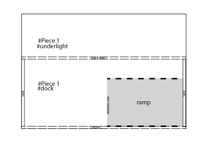 (for my 23″x10 closed dock, the sides are 9.5″…not 10″)To make the ramp, you only need take the Base (#Piece1) and the cut a strait line from one side edge to about the middle of the platform. maybe a little less. depends on your tank.
